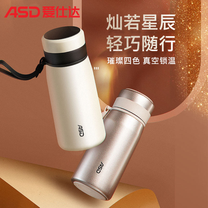 爱仕达316不锈钢保温杯男女士商务水杯车载茶水分离泡茶杯子400ml热门设计联盟服务商