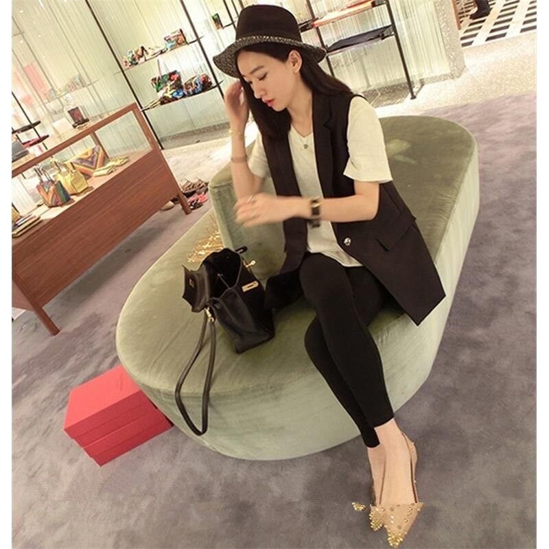 西装马甲女中长款2021新款潮春秋无袖坎肩外套工装黑色西服马夹女热门设计联盟服务商