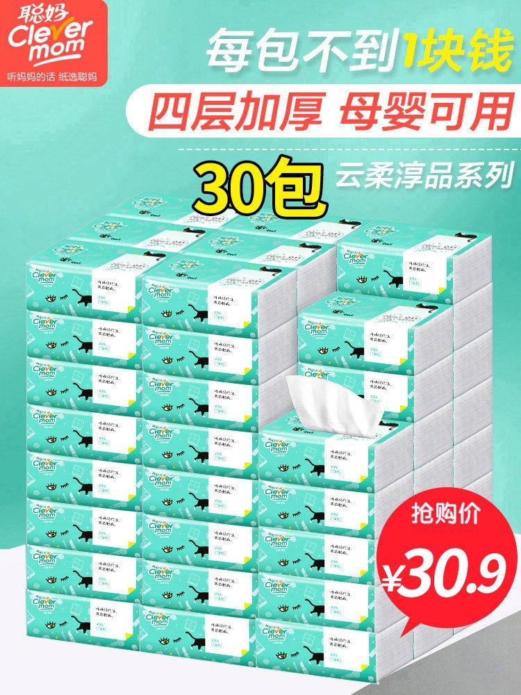 原木4层30包抽纸整箱家庭卫生纸巾家用实惠装聪明妈妈生活馆热门设计联盟服务商