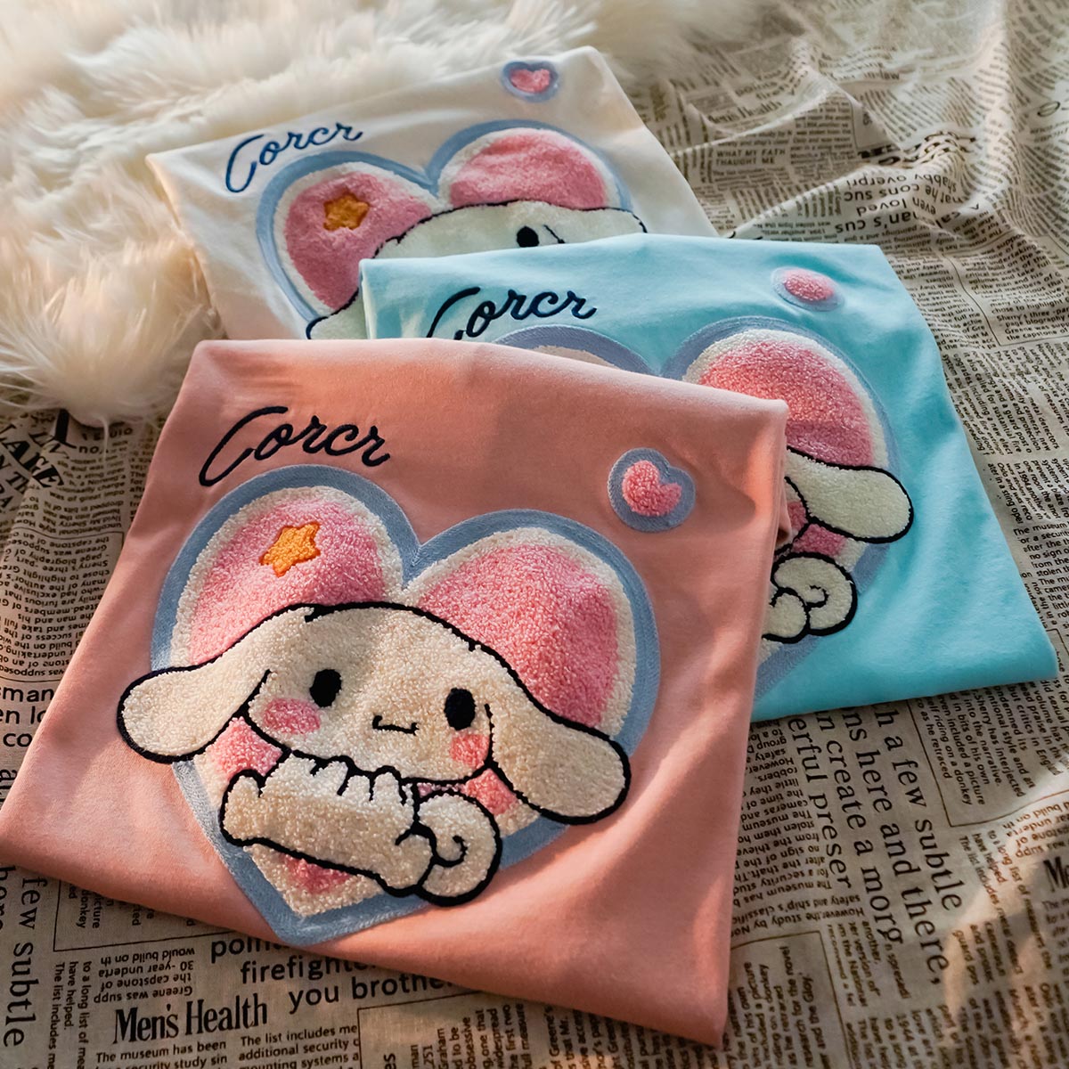 VRF毛绒兔子短袖T恤男ins超火女生爱心小众潮流上衣设计感短T情侣热门设计联盟服务商