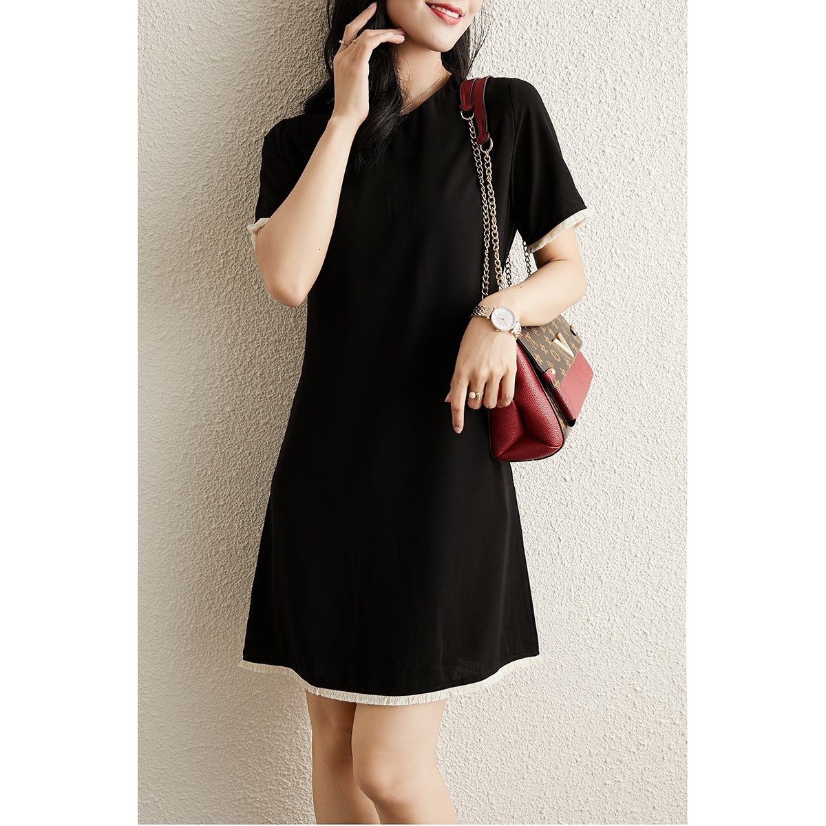 2021夏装新款法式时髦显瘦小黑裙短袖气质赫本风连衣裙女设计感潮热门设计联盟服务商