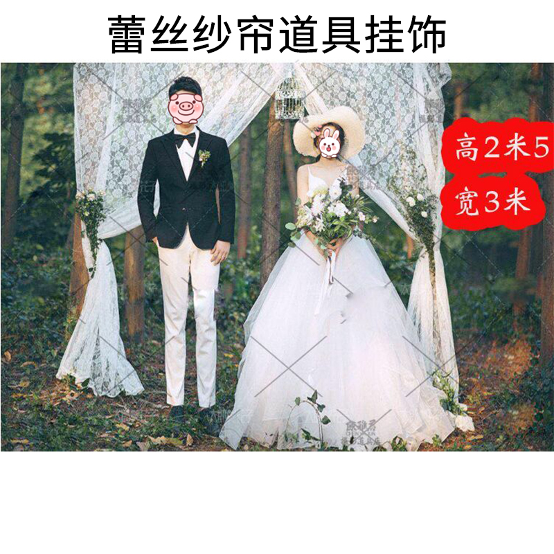 旅拍婚纱照摄影道具创意透明英文板森系外景拍照白色蕾丝窗帘装饰热门设计联盟服务商