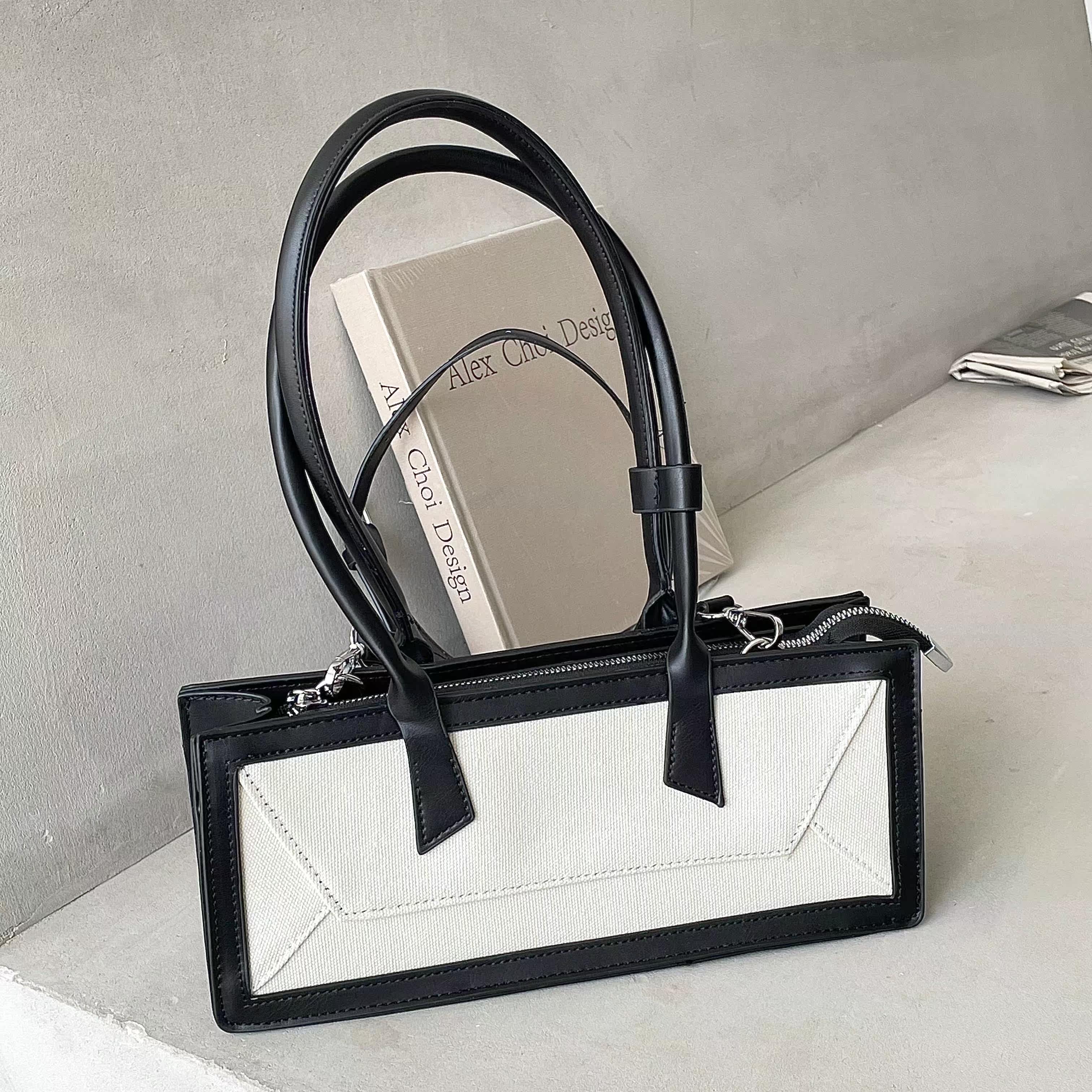 小众设计帆布拼接法棍包腋下包2021新款复古通勤斜挎包热门设计联盟服务商