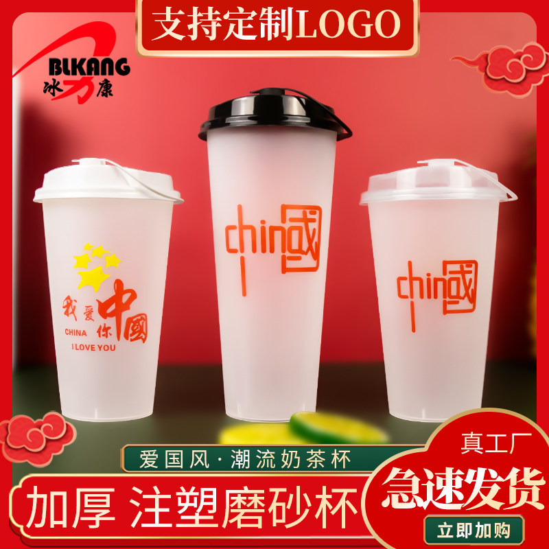 90口径奶茶杯一次性700ml加厚磨砂杯高颜值中国风网红杯可定LOGO热门设计联盟服务商