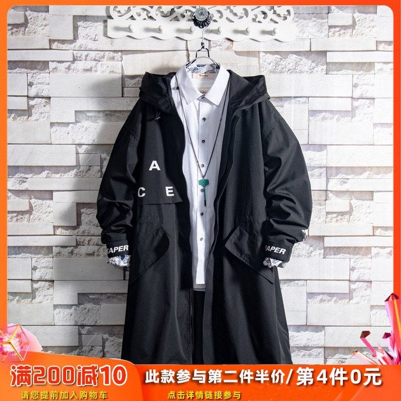 白糖玫瑰机能工装加绒风衣外套男中长款痞帅青少年连帽秋冬季大衣